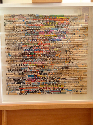 En soulignant, ajoutant des signes, des ponctuations, des couleurs, en biffant, retranchant, occultant, opacifiant, j’aspire à créer un objet intriguant et complexe, qui offre beaucoup à voir et à rêver.
